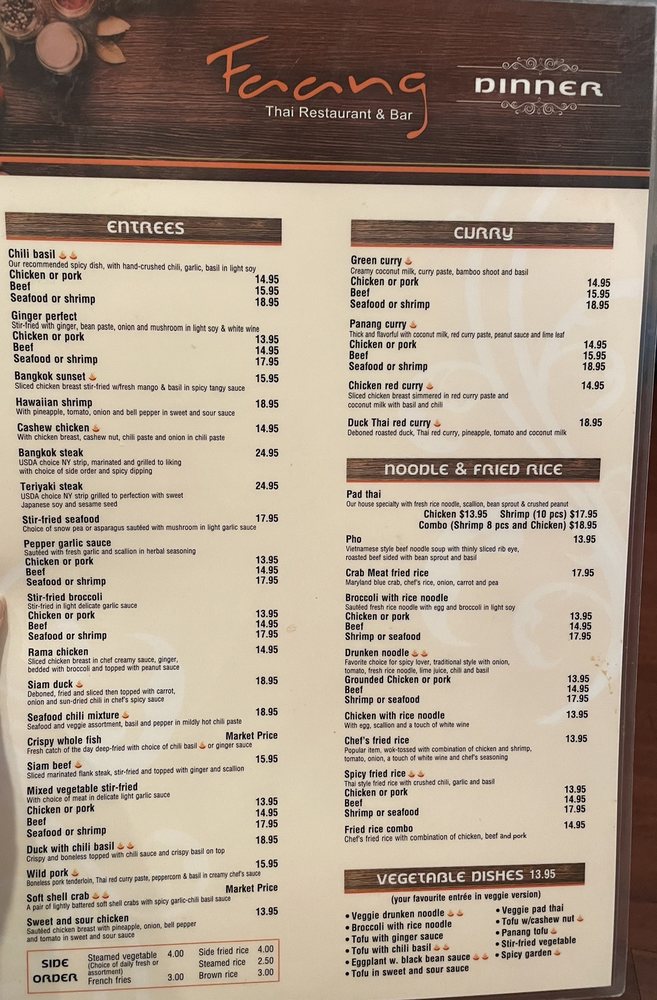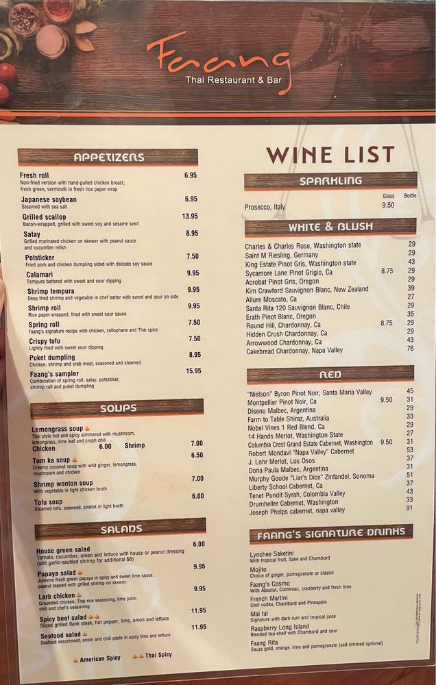 Faang Thai Restaurant & Bar Menu